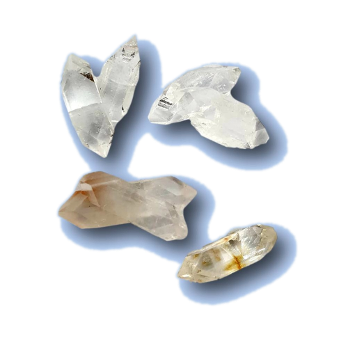 Apophyllit ähnelt sehr dem Bergkristall. Als markantes Erkennungszeichen sind seine pyramidenförmigen Spitzen nur 4-flächig ausgebildet und er zeigt flache Bruchflächen. Bergkristallspitzen hingegen laufen immer 6-flächig zusammen und die Bruchflächen sind muschelig ausgebildet.