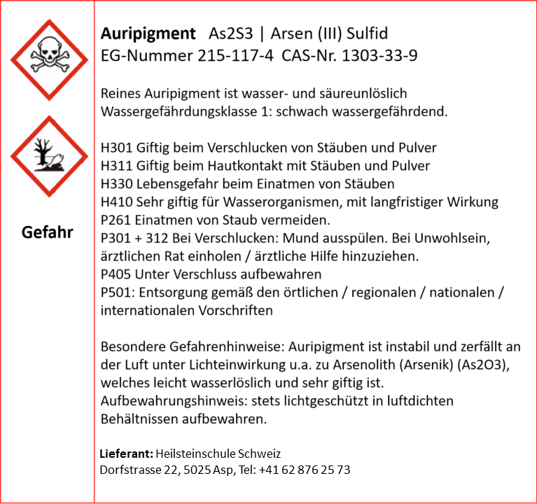 Datenblatt: Auripigment Datenblatt: Sicherheitshinweise