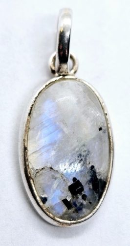 Labradorit weiss Anhänger mit Silber Einzelstück 2 cm