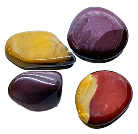 Der vielfarbige Mookait verkörpert die Eigenschaften von gelbem, rotem, violettem und weissem Jaspis. Ein idealer Begleiter für den Urlaub. Mookait kann langfristig getragen werden, idealerweise als Armband oder Halskette.