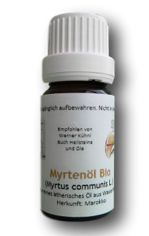 Durch Wasserdampfdestillation aus den Blüten und Zweigspitzen von Myrtus communis gewonnen