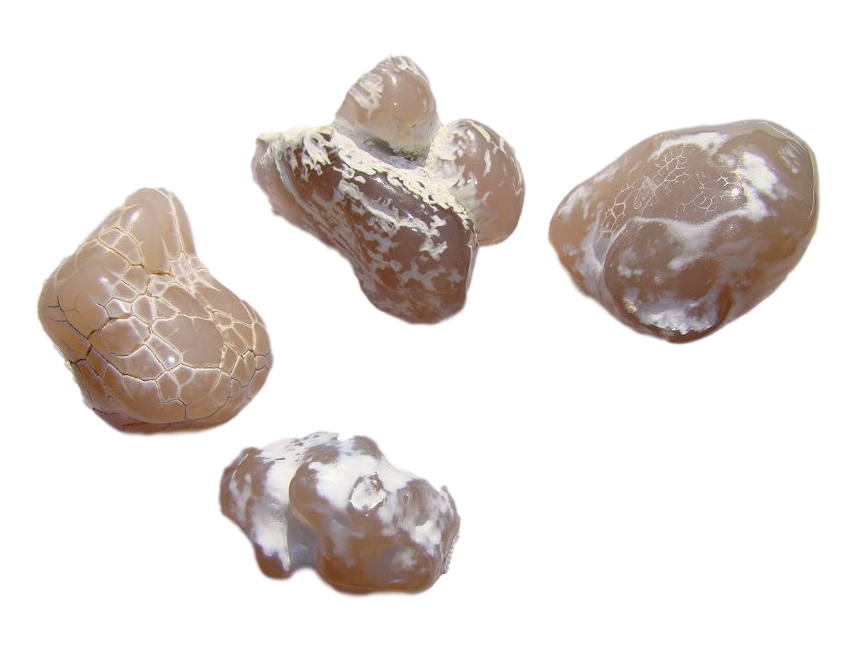 Schlangenhautachat ist in seiner natürlichen Farbe immer hellbeige mit weissen Linien. Varietäten mit gelbliche, rötlichen bis braunen Farbtönen, wie oft im Handel angeboten, ist immer gebrannt oder gefärbt